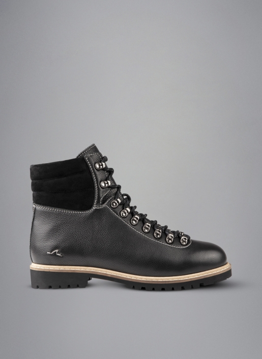 Ботинки из кожи. Зернистая кожа, шнурки в тон, вставка из замши, металлический значок на боковой панели, резиновая подошва