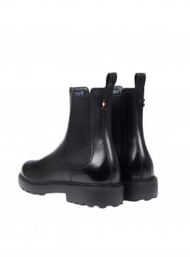 Утепленные челси из кожи. Закругленный носок, петля на заднике, эластичные вставки по бокам, логотип на задней части подошвы