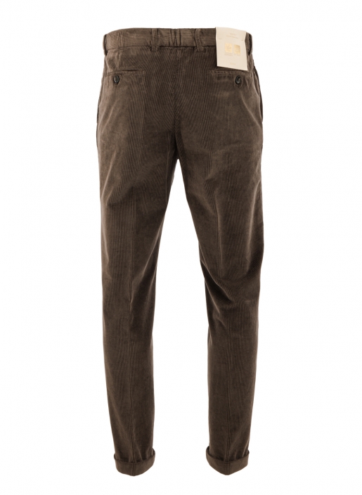 Брюки из вельвета в рубчик. Стандартный крой, застежка на пуговицу и молнию, петли для ремня, боковые французские карманы, задние прорезные карманы с пуговицами