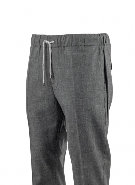 Комфортные брюки из легкой ткани. Стандартный крой, эластичный пояс на кулиске, задние прорезные карманы, один карман с клапаном
