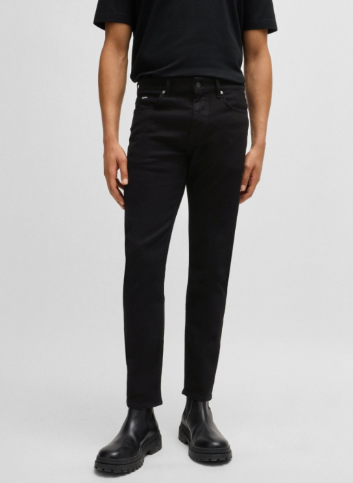 Джинсы зауженного кроя. Стандартный крой, пять карманов, застежка на пуговицу и молнию, петли для ремня, нашивка с логотипом сзади