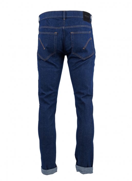 Джинсы прямого кроя. Петли для ремня, боковые карманы, задние накладные карманы, застежка на молнию и пуговицу, отвороты снизу, нашивка с логотипом сзади