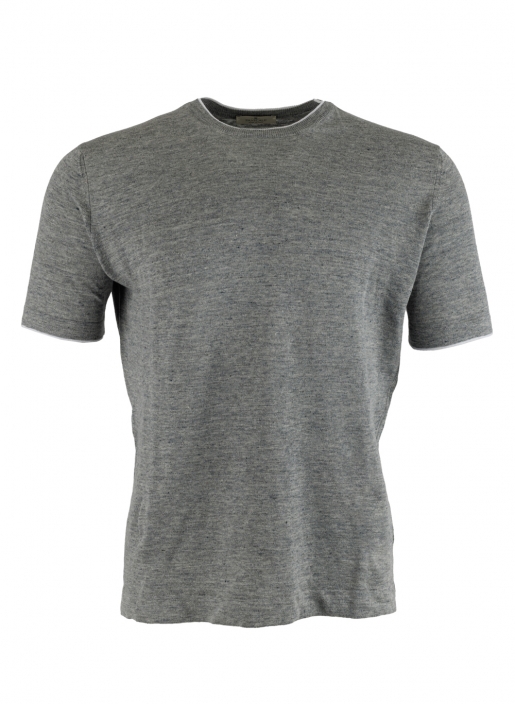 Базовая футболка из легкой ткани. Стандартный крой, короткие рукава, круглый ворот, контрастная полоска на вороте