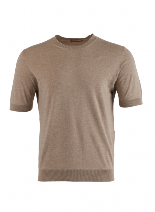 Базовая футболка из хлопка. Стандартный крой, короткие рукава, круглый вырез, детали в рубчик