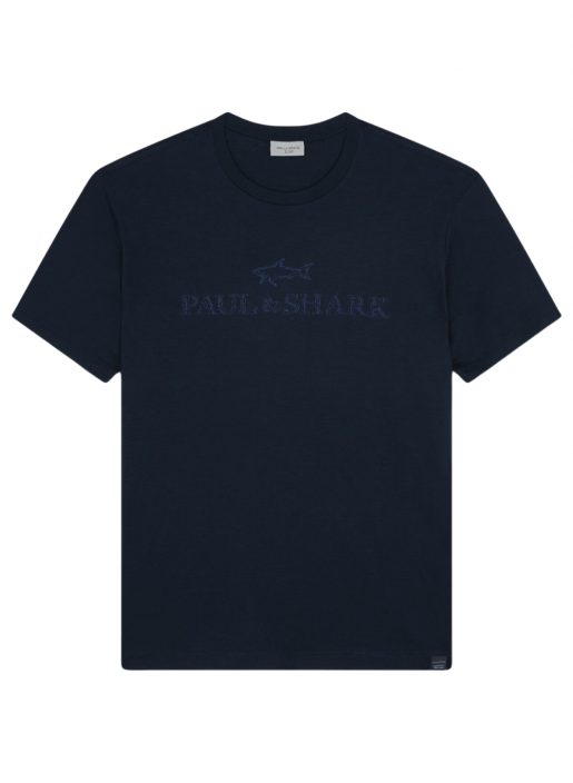 Футболка с вышивкой. Стандартный крой, короткие рукава, круглый вырез, вышивка логотипа в тон на груди