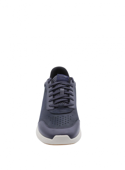 Легкие кожаные кроссовки. Комбинация кожи и текстиля, резиновая подошва, шнуровка в тон, протектор на носке, перфорация и вышитый логотип на боковой панели