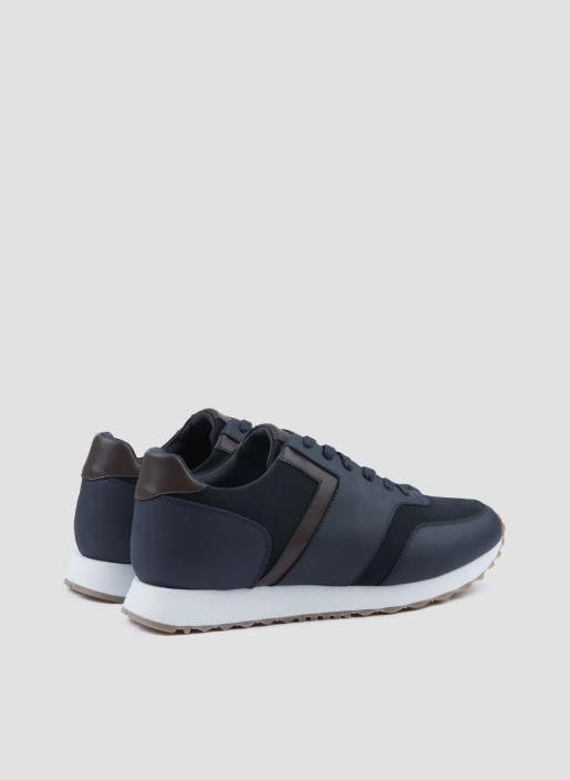 Комбинированные кроссовки. Резиновая подошва, комбинация кожи и замши, контрастная подошва и полосы на боковых панелях
