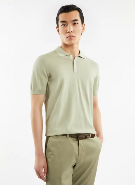 Базовое поло. Стандартный крой, короткие рукава, воротник поло, планка на трех пуговицах, манжеты и нижний край в рубчик