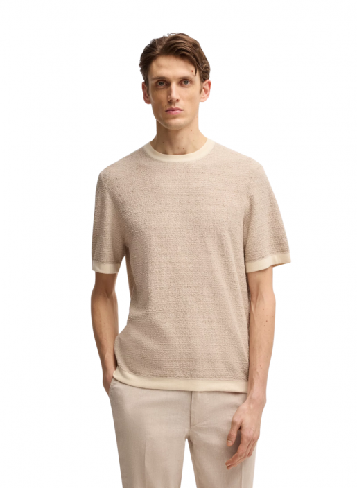 Пуловер с короткими рукавами. Свободный крой, круглый вырез, манжеты в рубчик с контрастными полосками