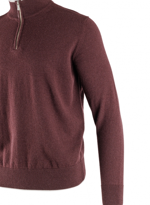 Базовый пуловер. Стандартный крой, воротник-стойка на молнии с контрастной линией, манжеты, нижний край, воротник в рубчик