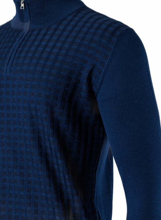 Пуловер с дизайном в клетку. Стандартный крой, длинные рукава, воротник-стойка на молнии, дизайн в клетку, воротник, манжеты, нижний край в рубчик