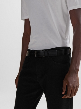 Ремень из кожи со структурированной полоской. Пряжка из матовой бронзы, выгравированный логотип на застежке