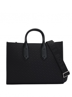 Кожаная сумка-тоут. Прямоугольная форма, регулируемый съемный ремешок с логотипом, внутренний карман на молнии, два внутренних открытых кармана, логотип BOSS спереди